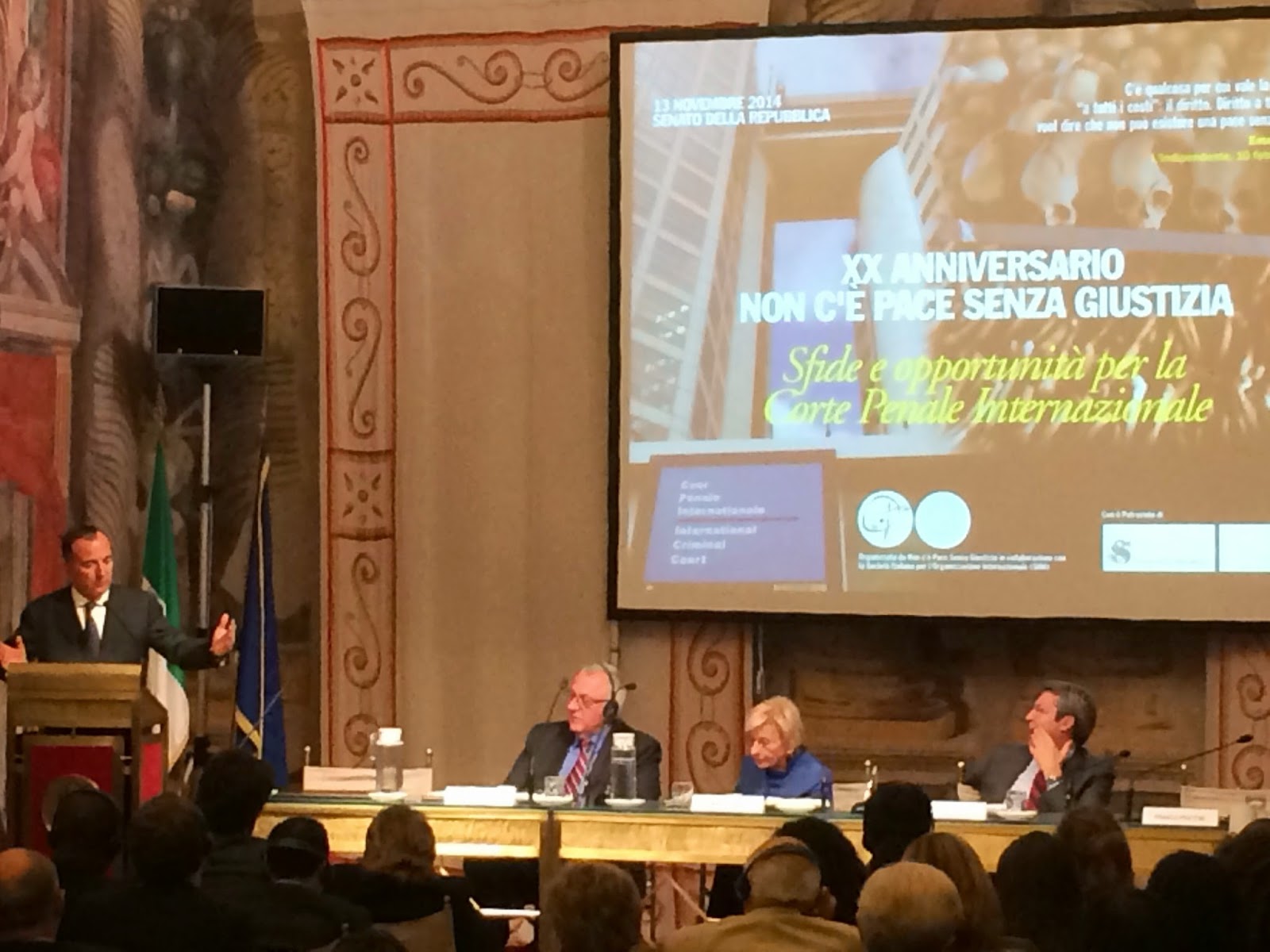 Alla conferenza hanno partecipato, tra gli altri, il presidente del Senato italiano Pietro Grasso, il viceprocuratore della Corte penale internazionale (Cpi), James Kirkpatrick Stewart, il sottosegretario agli Affari Esteri italiano, Benedetto Della Vedova, Italia; l'ex ministro degli Esteri italiano e fondatrice di Non c'e' Pace Senza Giustizia, Emma Bonino, e l'ex ministro degli Esteri italiano e presidente della Societa' italiana per l'organizzazione internazionale (Sioi), Franco Frattini.